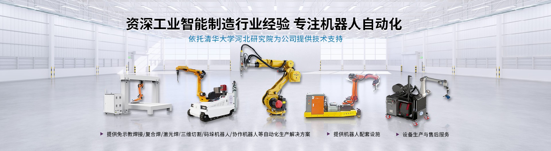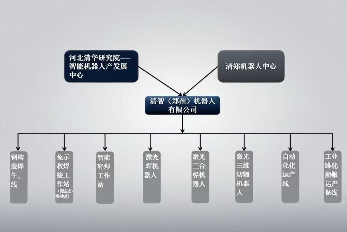 清智(郑州)机器人有限公司(以下简称“清智机器人”)是郑州市高新区人民政府联合清华大学河北院共同孵化的清华官方科研机构重点科技项目,是清华为郑州市高新区区域经济转型升级和产业创新发展提供科技助力而创立的高科技企业。清智机器人依托清华科技成果转化成功经验,专注于研发和生产焊接机器人、便携式焊接机器人、装焊生产线、钢结构焊接工作站、三维激光切割机器人、激光复合焊机器人等产品的生产与服务。